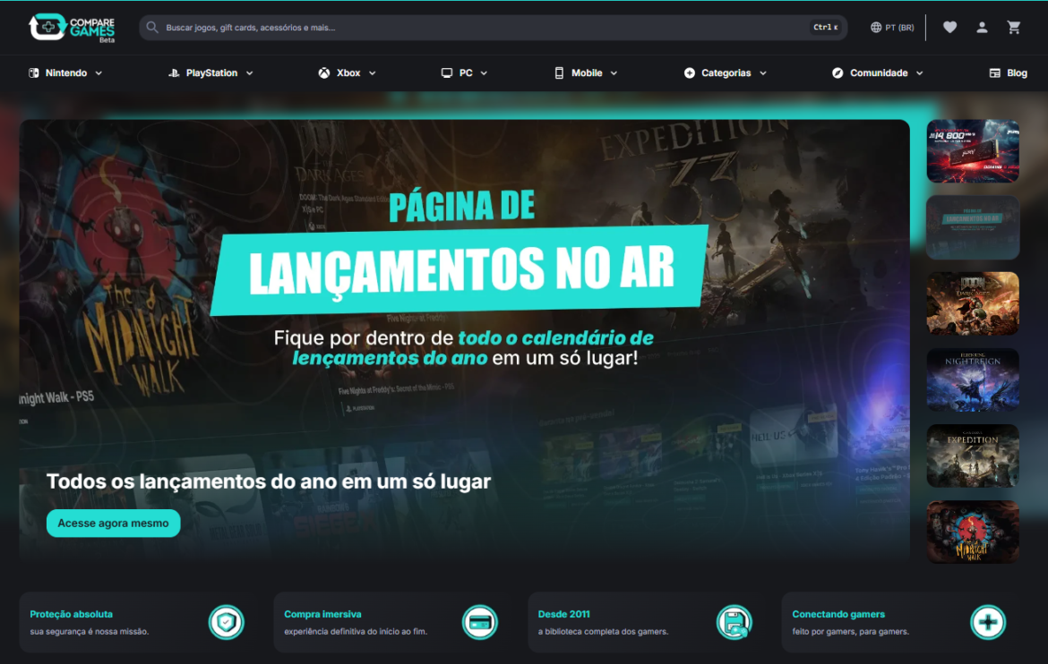 Esse cenário exige plataformas mais preparadas para dar suporte a um público ávido por novidades, bom custo-benefício e informações certeiras. Com a proposta reformulada, a Compare Games se posiciona como uma aliada do jogador moderno, que não quer apenas comprar, mas entender o melhor momento e lugar para isso.